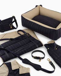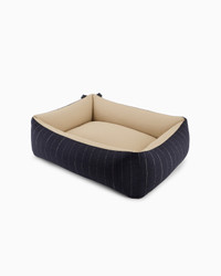 Warm and comfortable, this dog bed will keep your pet in a cosy embrace when it is resting and relaxing. Crafted in cosy wool, this accessory is embellished with a pinstriped motif, a tribute to the ready-to-wear world, recalling other selections from the collection. Perfect for making your four-legged friend feel like the real ruler of the home with irresistibly luxurious pampering. This accessory is part of the Poldo x Giorgio Armani collection, the first capsule collection entirely dedicated to our four-legged friends, combining the brand’s unmistakable style with functional fabrics and designs. A selection full of must-have accessories designed to pamper pets during moments of relaxation and accompany them on strolls and trips to discover the city. Pinstriped motif virgin wool Removable Washable Padding Water-resistant treatment on the nylon part Size S: 58 x 42 cm Size L: 100 x 70 cm Made in Italy Product Code: GX000001TE10554FB034