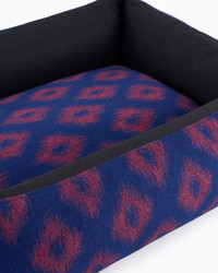 Warm and comfortable, this dog bed will keep your pet in a cosy embrace when it is resting and relaxing. The item is made of flannel featuring an Ikat print, an iconic motif for the brand. Perfect for making your four-legged friend feel like the real ruler of the home with irresistibly luxurious pampering. This accessory is part of the Poldo x Giorgio Armani collection, the first capsule collection entirely dedicated to our four-legged friends, combining the brand’s unmistakable style with functional fabrics and designs. A selection full of must-have accessories designed to pamper pets during moments of relaxation and accompany them on strolls and trips to discover the city. Product Code: GX000001TE105541FB033 Details Composition 99% Virgin Wool 1% Elastane Removable cover Washable Padding Water-resistant treatment Size S: 58 x 42 cm Size L: 100 x 70 cm Made in Italy