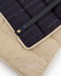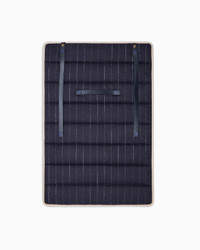Travelling in style becomes luxurious even for your small four-legged friends with this cosy virgin wool mat. This style, which can be folded up and closed with two practical leather straps, is embellished with a pinstriped motif, a tribute to the ready-to-wear world, recalling other selections in the pet capsule collection. This accessory is part of the Poldo x Giorgio Armani collection, the first capsule collection entirely dedicated to our four-legged friends, combining the brand’s unmistakable style with functional fabrics and designs. A selection full of must-have accessories designed to pamper pets during moments of relaxation and accompany them on strolls and trips to discover the city. Pinstriped motif virgin wool Removable Washable Matching smooth leather strap fastening with press studs Customised with small leather tag with embossed Giorgio Armani logo Padding Water-resistant treatment on the nylon part Size S: 58 x 42 cm Size L: 100 x 70 cm Made in Italy Product Code: GX000003TE10554FB034