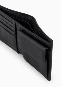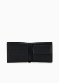 Crafted from pinpoint embossed leather, this wallet features card holder slots and a banknote compartment. The style is embellished with a front heat-stamped logo. Product Code: Y2R122YR56J180001 Details Composition 100% Calf-skin leather Leather wallet Bifold style Heat-stamped Giorgio Armani logo Inner compartments Coin compartment Measurements: 12 x 9.5 x 2 cm Made in Italy