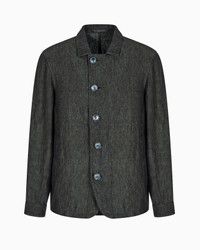 Sophisticated single-breasted jacket made of pure linen in two intense collection shades, onyx black and forest green. The lightweight design features a shirt-style collar and cuffs, highlighting the extreme versatility of the piece. A modern item that is perfect for completing a wide array of looks. Single-breasted jacket Shirt collar Slightly asymmetric single-breasted closure with five buttons Single-buttoned cuffs Unlined Length: 70 cm Made in Italy Product Code: GM001115AF14762U7238