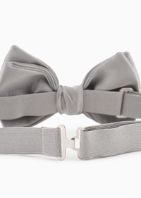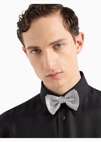 This pure silk bow tie elegantly completes formal attire. Adjustable hook at the back. Product Code: 3600318P999100017 Details Composition 100% Mulberry silk Knotted bow tie Adjustable back Measurements: 10 x 7 cm Made in Italy