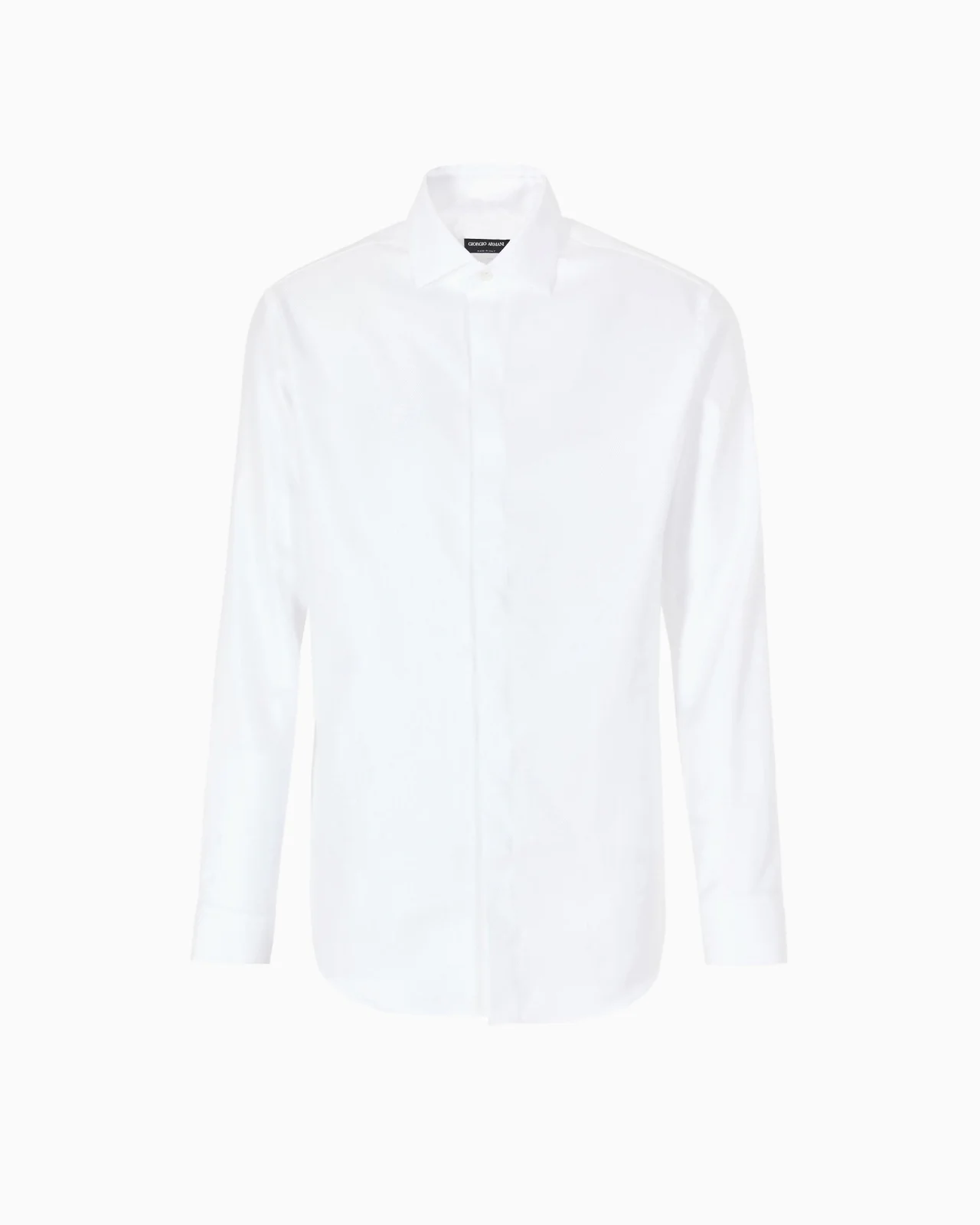 Made from smooth cotton, this regular-fit shirt is available in colours that can be worn everywhere. The style is defined by its French collar with stays, back yoke and mother-of-pearl buttons. A classic piece, a must-have addition to the wardrobe of the elegant man. Product Code: 3WGCC08GT04N51U0BN Details Composition 100% Cotton Regular fit Classic French collar with collar stays Back yoke Back darts Fastened with mother-of-pearl buttons French seams Made in Italy Fitting The model is 188 cm tall and is wearing size 40 Italian Size