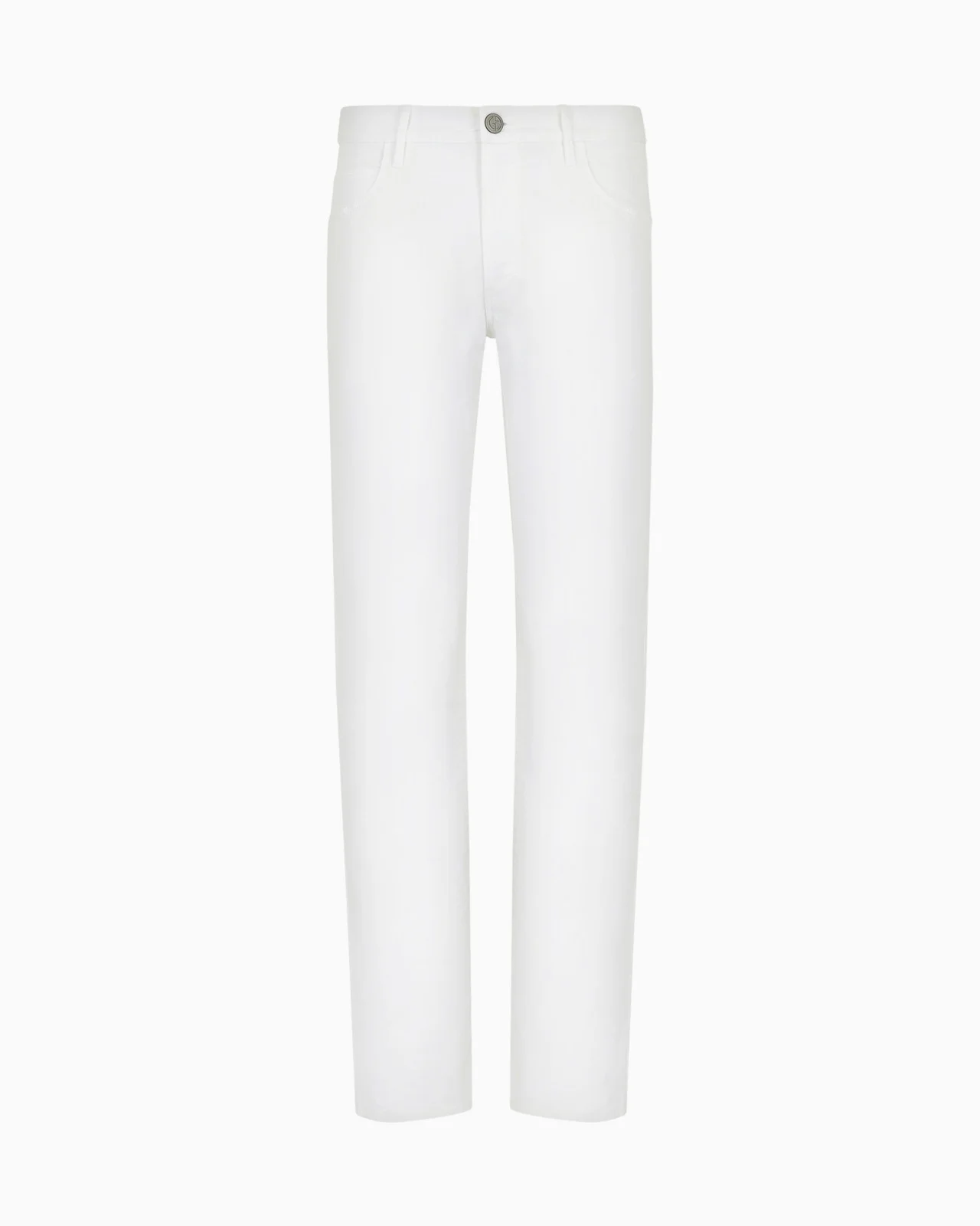 These five-pocket, stretch-cotton trousers feature clean lines and a regular fit. A versatile, comfortable piece that is perfect for laid looks teamed with a jacket and a casual shirt and for more athletic looks. Product Code: 6KSJ15SN69Z1U090 Details Composition 96% Cotton 4% Elastane Five-pocket, regular-fit trousers Button and zip fastening Two pockets and small front pocket Two flapped back pockets Cuff width: 19.5 cm Made in Italy Fitting The model is 188 cm tall and is wearing size 32