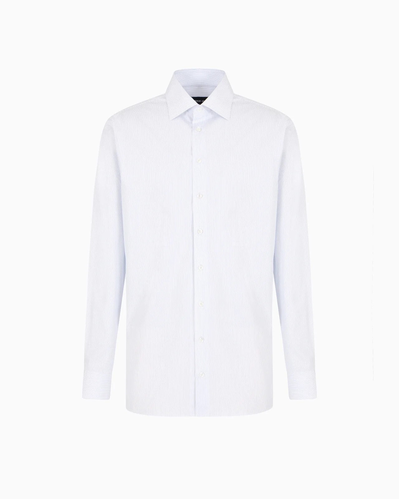 Regular-fit shirt made from luxury cotton with a striped motif. It features a back yoke, mother-of-pearl buttons and a French collar with stays. A style that perfectly completes elegant evening looks. Regular fit French collar with collar stays Back yoke Tailored side hemline Shirt-fabric collar-stay pocket Fastened with mother-of-pearl buttons Made in Italy Product Code: GM000469TE14554MB068