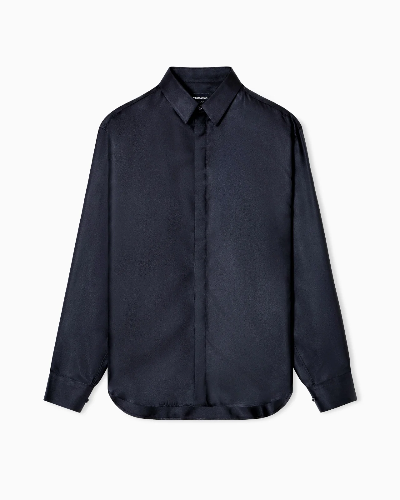 Regular-fit shirt made from silk twill with a smooth and slightly shiny texture. A versatile, sophisticated offering in a comfortable fit, perfect for completing formal looks or adding a sophisticated touch to everyday outfits. Classic collar Closure with concealed buttons Long sleeves Button cuffs Back yoke Made in Italy Product Code: GM002301TE11158UC001