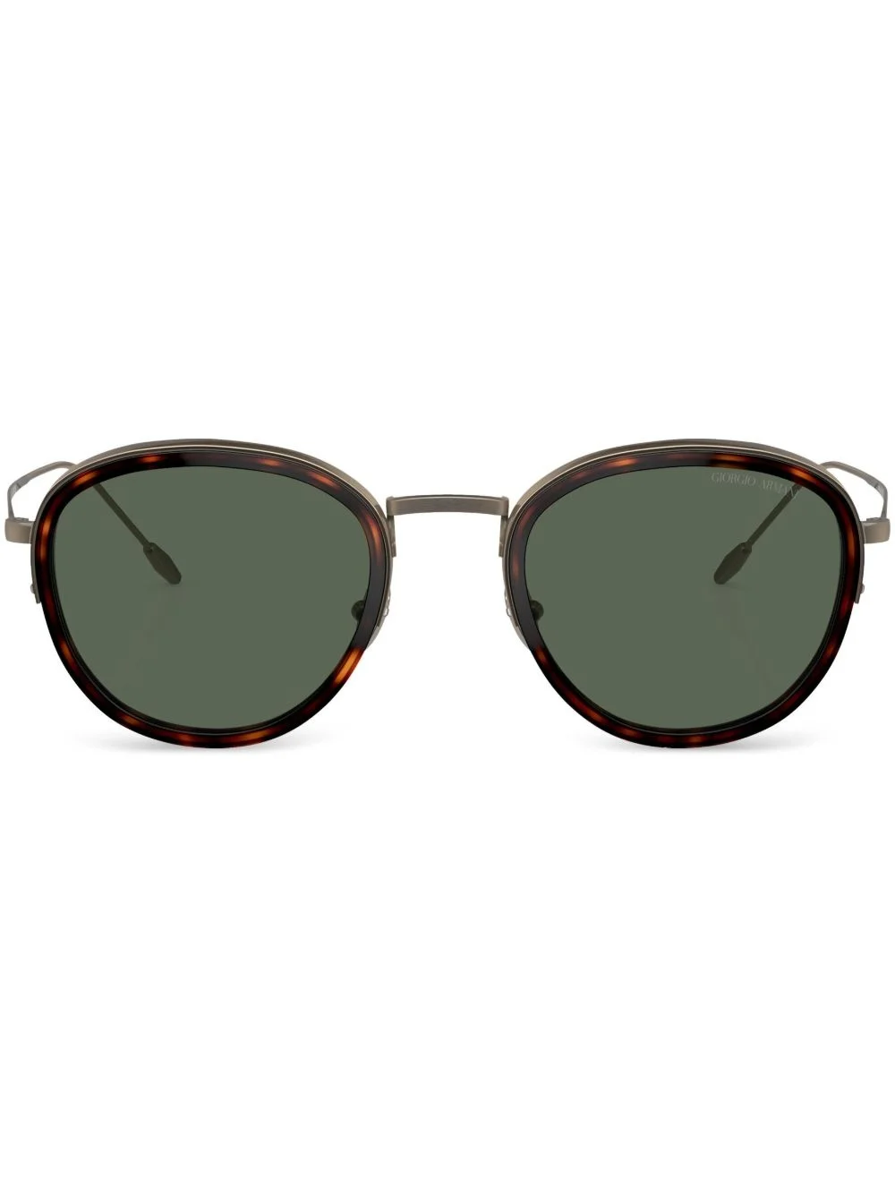round-frame sunglasses Highlights - Havana brown - Metal - Tortoiseshell effect - Round frame - Grey tinted lenses - Uv-protective lenses - Lens decal - Nose pads - Straight arms - Curved tips - Gold-tone hardware - These glasses come with a protective case. Made in United States Composition Metal 100% SIZE & FIT Measurement Bridge Width 0.86 in(2.2 cm) Lens Diameter 1.96 in(5 cm) Arm Length 5.9 in(15 cm)