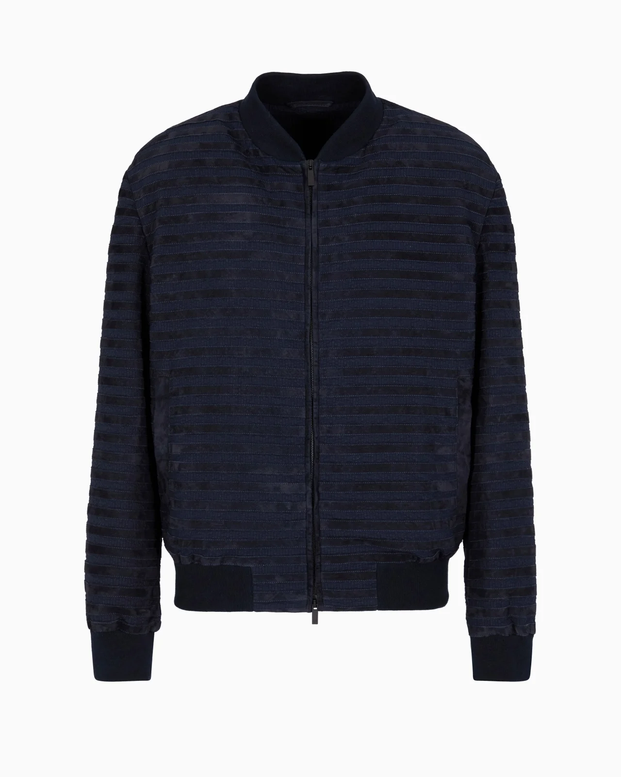 Distinctive, refined blouson in a comfortable fit. Embellished with cotton and cashmere knit details, the design is crafted by applying thin suede stripes by hand on a seersucker fabric base, with it taking approximately 30 hours to create a single piece. A special item, designed to complete numerous looks with a touch of sophistication. Cotton and cashmere knit baseball collar Front zip closure with double pull tabs Two vertical pockets with press stud Cotton and cashmere knit cuffs and hem Seersucker lining Two inner pockets Leather patch with heat-stamped logo Length: 67 cm Product Code: GM001132AF14745UB115