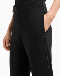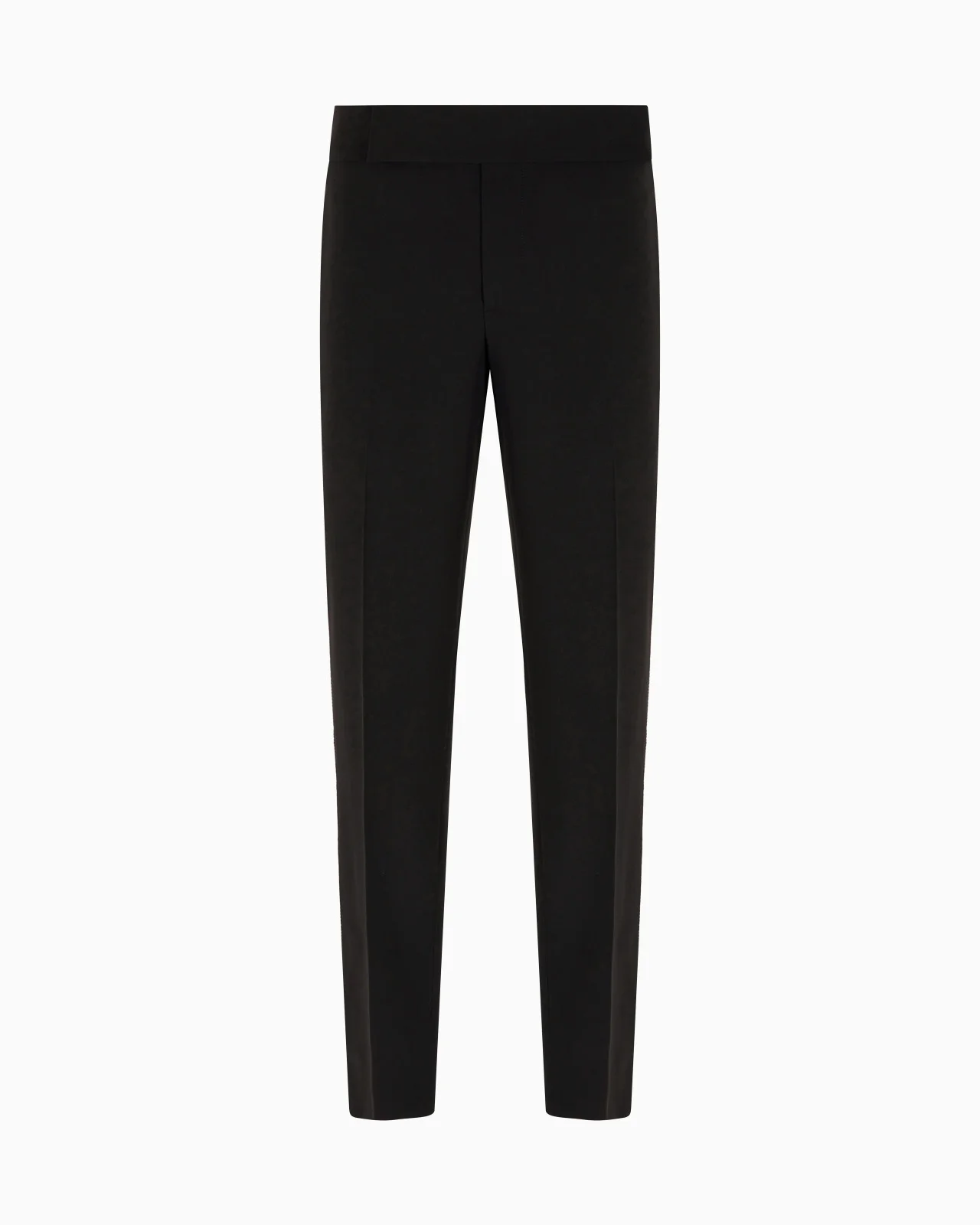 Elegant flat-front trousers made from wool crepe in a comfortable fit, a must-have in the refined man’s wardrobe. This style is part of the Giorgio’s collection: a selection of Giorgio Armani apparel and accessories inspired by the evening world. Clean lines, attention to detail, an elegant night-time colour palette and the choice of luxurious materials define this modern and essential selection, providing the look for an effortless evening wardrobe. Product Code: 3WGPP0ZWT002Z1UC99 Details Composition 100% Virgin Wool Flat-front style Closure with concealed double hook, zip and one button Two side welt pockets Two welt-pockets with button on the back Monochromatic rhinestone piping Cuff width: 20 cm Made in Italy Fitting The model is 188 cm tall and is wearing size 48/M Italian Size