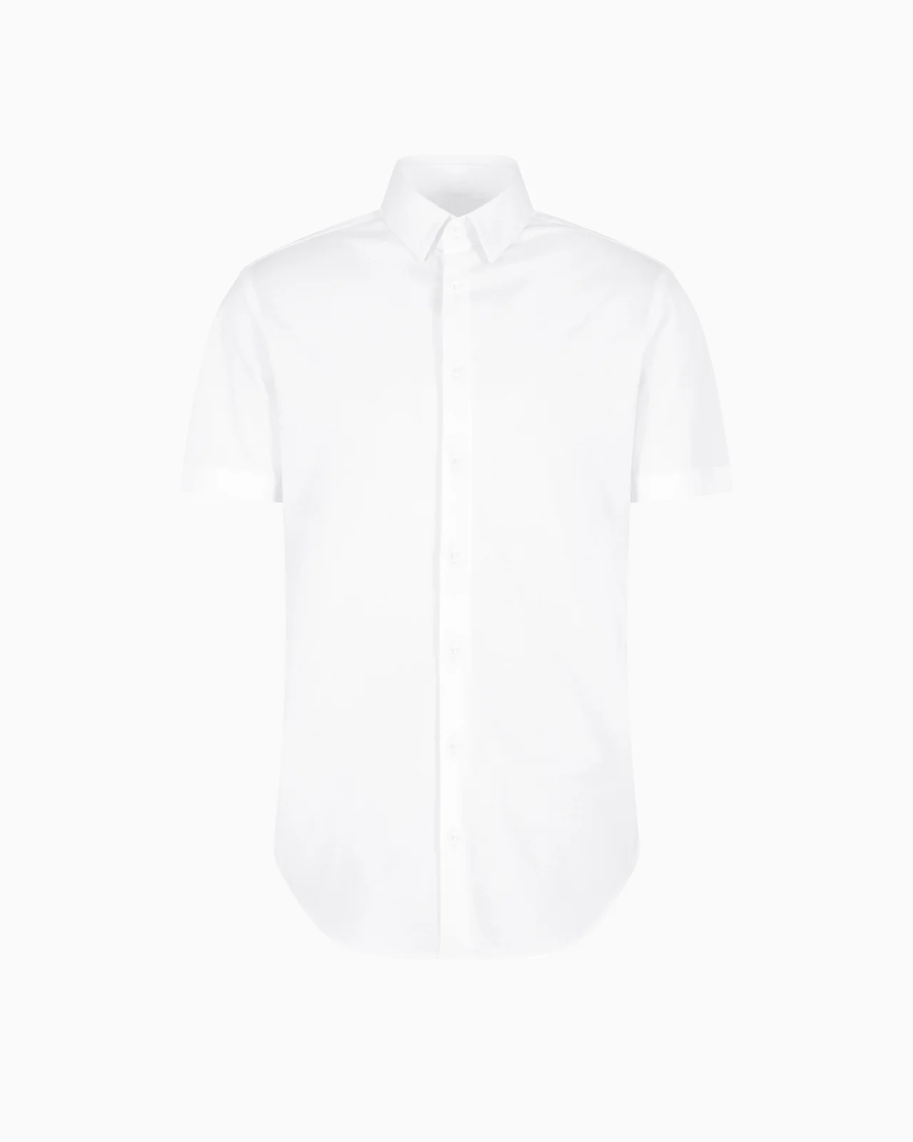 This slim-fit, cotton-jersey shirt adds comfort and sophisticated style to casual looks. It features short sleeves, a classic collar and exposed button placket. Product Code: 8WGCCZ1VJZ0711U0BN Details Composition 100% Cotton Slim fit Small collar leaf with metal stays Short sleeves Mother-of-pearl logo button closure Back darts Back yoke Made in Italy Fitting The model is 6' and is wearing size 41