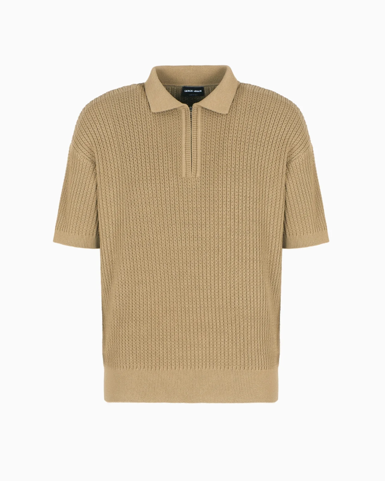 Sophisticated short-sleeved polo shirt made from a viscose blend with a fisherman’s rib stitch adding movement. The piece, with its distinctive 3/4 zip fastening and contrasting edges, is perfect for completing daytime looks in a casual way, teamed with the collection's trousers and jackets. Fineness: 7 Polo-shirt collar Three-quarter-zip closure Short sleeves with dropped shoulders Ribbed collar, cuffs and hem Fisherman’s rib stitch Made in Italy Product Code: GM001027AF14659U6240