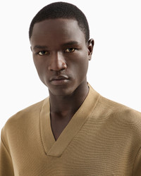 SHORT-SLEEVED V-NECK JUMPER IN VIRGIN WOOL
