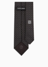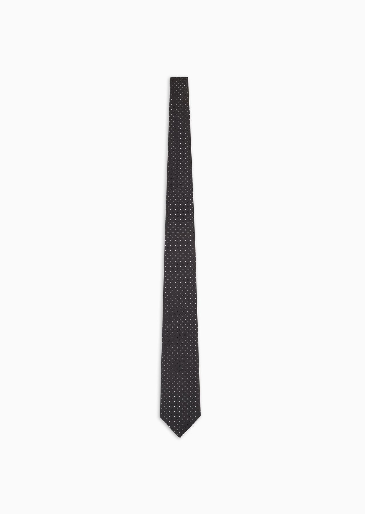 A tie in exquisite pure silk featuring a jacquard micro polka dot motif. A must-have for every elegant man’s wardrobe. Product Code: 3600874F918100020 Details Composition 100% Silk Silk tie Measurements: 146 x 7 cm Made in Italy