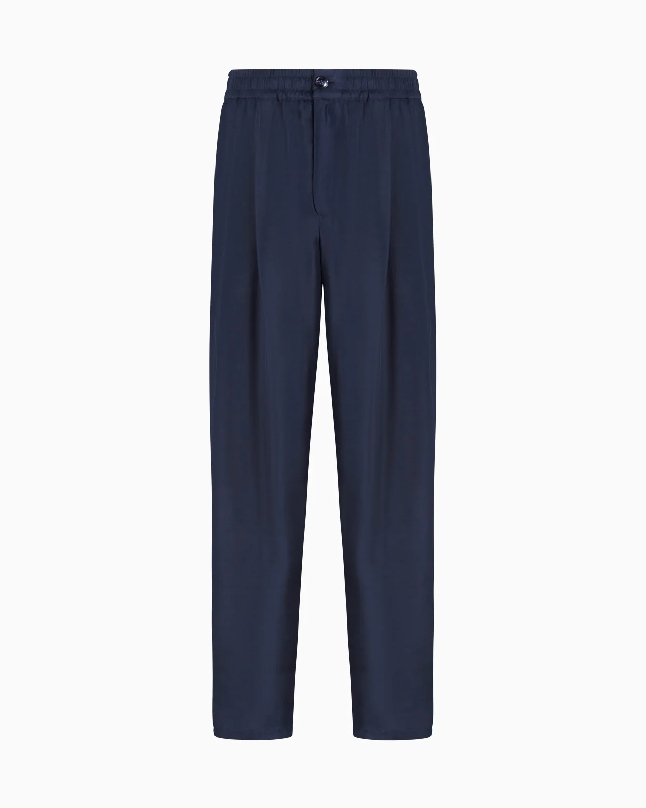 Comfort-fit, cotton-blend trousers with a slinky silhouette. With two pleats, side welt pockets and a button-and-zip fastening, the style stands out for its relaxed, fresh attitude and is perfect for pairing with the collection's shirts and T-shirts in looks that are always different. Double-pleat trousers Elasticated waist Button and zip closure Two side pockets Back pocket with button Cuff width: 21 cm Made in Italy Product Code: GM001408TE14321UB102