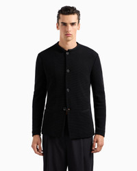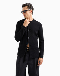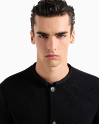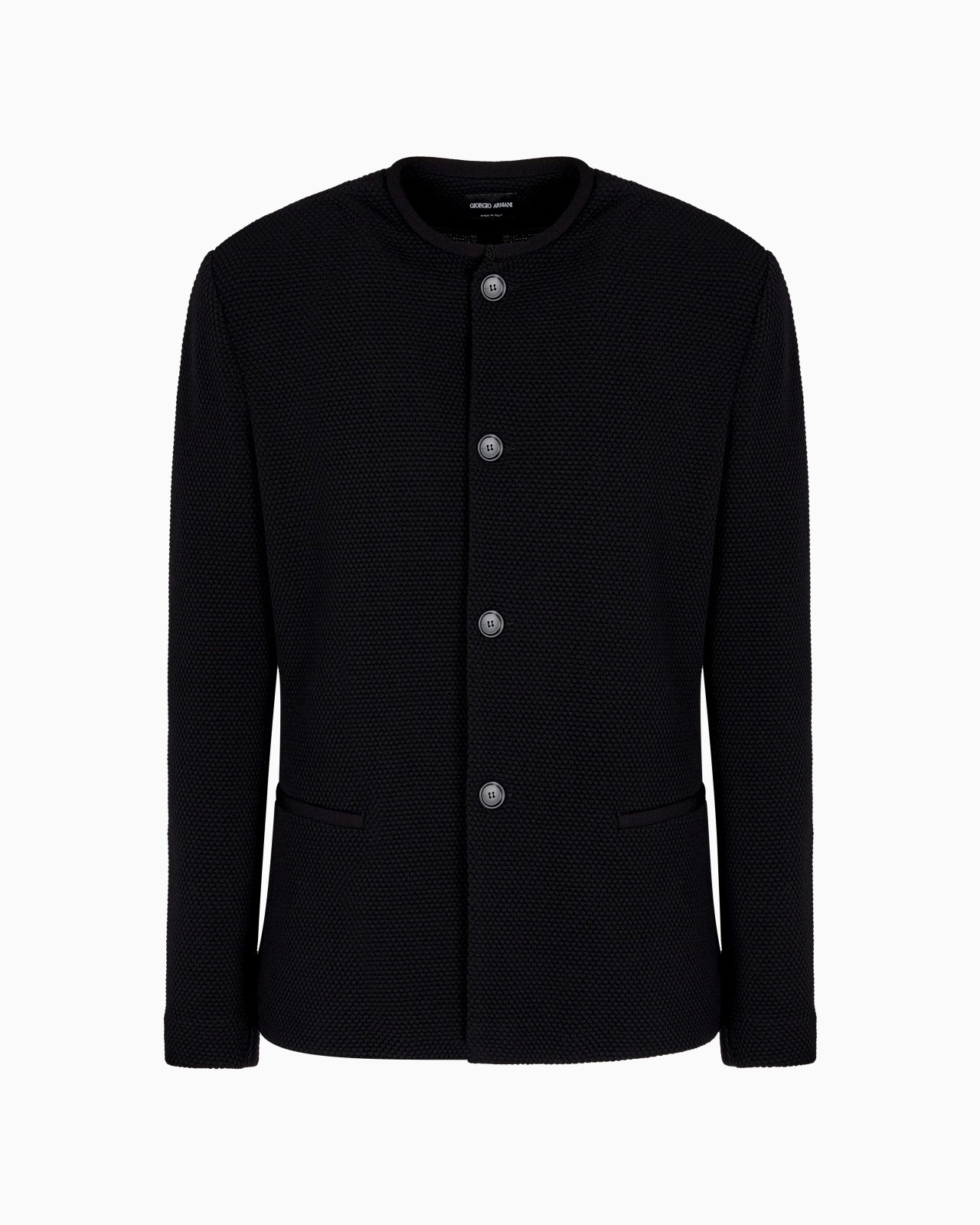 Sophisticated single-breasted jacket made from a virgin wool blend, with an essential, versatile style. Featuring a small roll collar and two welt pockets, the style stands out thanks to the special yarn which recreates the brand's iconic mesh motif. A modern item that’s perfect paired with the collection’s shirts and trousers. Single-breasted jacket Small rolled collar Macro-pique texture Single-breasted closure with four buttons Two welt pockets Unlined Length: 72 cm Made in Italy Product Code: GM001495TE13801UC001