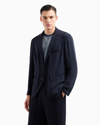 SINGLE-BREASTED JACKET IN CHEVRON CUPRO AND VISCOSE
