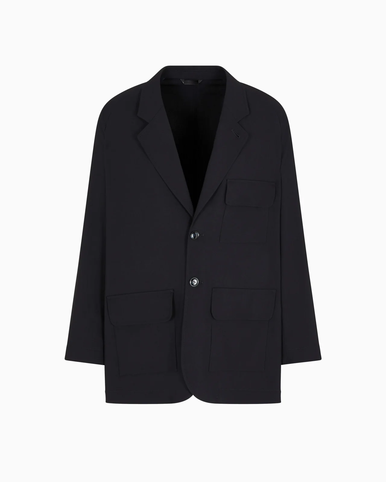 Fluid, slinky lines for this single-breasted jacket made from pure wool crepe with relaxed volumes. The style features notched lapels, patch pockets with a flap and buttoned cuffs. An offering that expresses an effortless, relaxed style, designed to dress without constraints and accompany every moment of the day with elegance. Single-breasted jacket Notched lapels Two-buttoned, single-breasted closure Patch pocket with flap on the chest Two front patch pockets with flap Cuff button Unlined Length: 81 cm Made in Italy Product Code: GM000146TE10043UB109