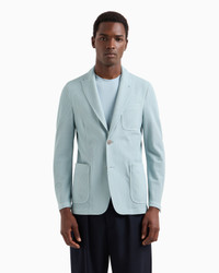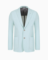 Slim fit and completely deconstructed jacket: characteristics that give this style the iconic flowing lines for which Giorgio Armani is renowned. Single-breasted, two-button style made of technical waffle fabric. Flap pockets, two-buttoned placket and peak lapels complete the style. Single-breasted jacket Peak lapels Two-button closure Two patch pockets Front patch pocket Peak lapels Back closure Unlined Length: 72 cm Made in Italy Product Code: GM000696TE10045U9206