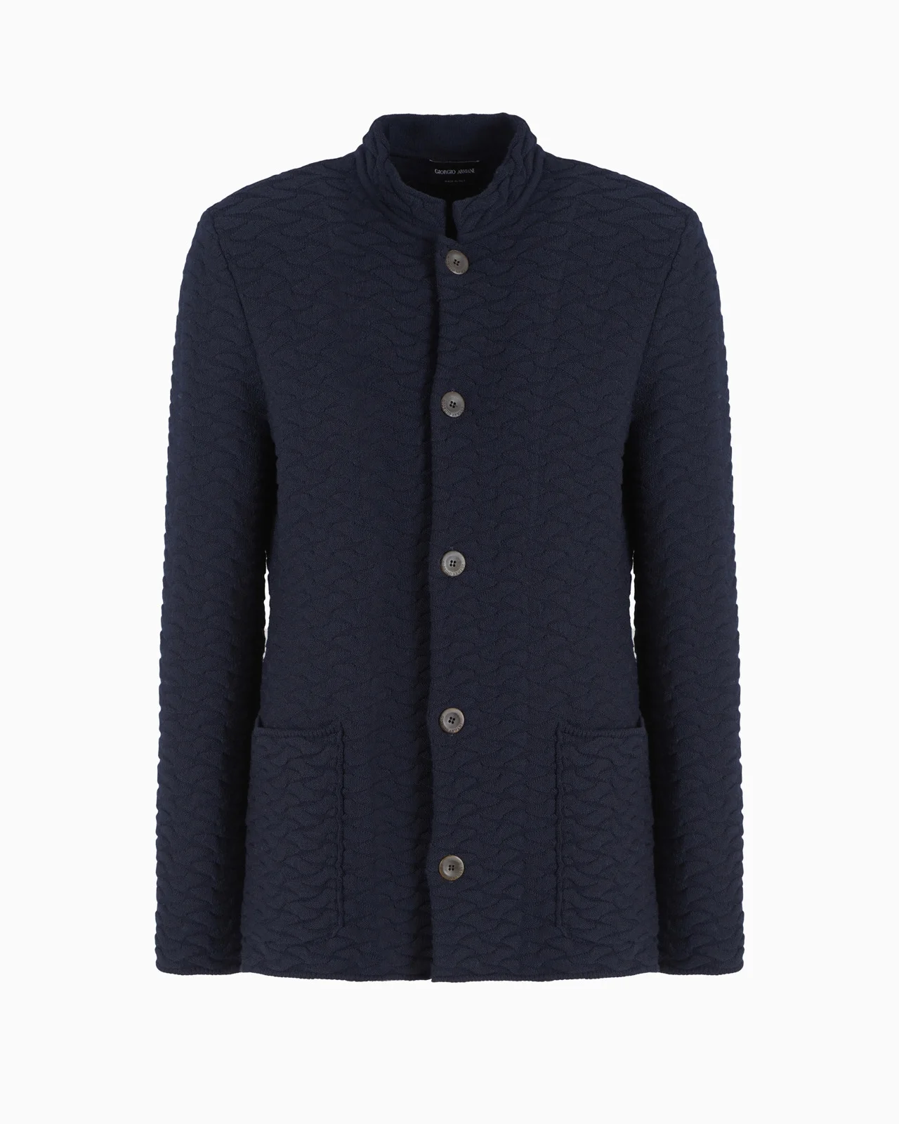 A complex KFB construction embellishes the lines of this single-breasted jacket, which is crafted from a cosy virgin wool knit. With a single-breasted closure, guru collar and two patch pockets, this style is distinguished by its laid-back, versatile attitude. The perfect complement to numerous daytime looks. Product Code: GM000286AF123211UB108 Details Composition 94% Virgin Wool 6% Polyester Single-breasted jacket Fineness: 7 Guru collar Five-button, single-breasted closure Two patch pockets Unlined Made in Italy Fitting The model is 188 cm tall and is wearing size 48 / M