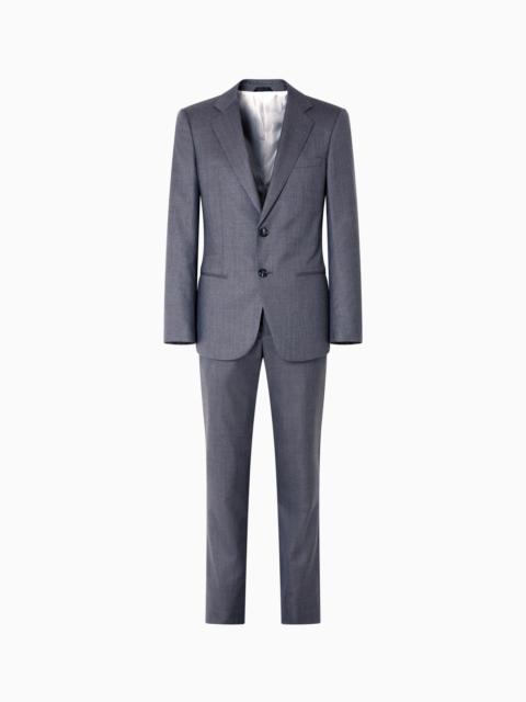 This sophisticated Soho line suit combines tailoring traditions with luxurious, refined fabrics that highlight the garment’s modern image. This style, in pure virgin wool with a micro-pinstriped motif, is composed of a single-breasted jacket with notched lapels and welt pockets, paired with flat-front trousers in a comfortable fit. A timeless style, indispensable to the elegant man’s wardrobe. Soho Line suit Single-breasted jacket with two buttons Notched lapels Two welt pockets Breast welt pocket Side slits Lined Jacket length: 73.5 cm Flat-front trousers Waistband with belt loops Button and zip closure Two welt pockets Two back welt pockets Trouser hem width: 19 cm Made in Italy Product Code: GM000605TE14625MB219