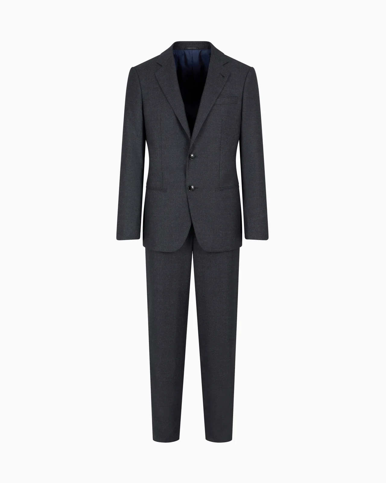 This sophisticated Soho line suit combines tailoring traditions with luxurious, refined fabrics that highlight the garment’s modern image. This style, in monochromatic virgin wool melange, is composed of a single-breasted jacket with notched lapels and welt pockets, paired with flat-front trousers in a comfortable fit. A timeless style, indispensable to the elegant man’s wardrobe. Product Code: GM000605TE118421M8064 Details Composition 100% Virgin Wool Soho line suit Single-breasted jacket with two buttons Notched lapels Welt pockets Breast welt pocket Side slits Lined Jacket length: 73.5 cm Flat-front trousers Button and zip closure Two welt pockets Two back welt pockets Trouser hem width: 19 cm Made in Italy Fitting The model is 188 cm tall and is wearing size 48