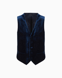Elegant single-breasted velvet waistcoat with a distinctive frosted effect that highlights the lustre of the yarn. An extremely sophisticated style inspired by the night sky, designed for unmistakably elegant evening looks. The garment is part of an exclusive capsule collection dedicated to special occasions, reflecting the iconic vision of elegance through the brand’s style codes. A sophisticated, timeless and elegant style in silk with geometric jacquard motifs and dense, luminous velvets that create an alluring play of light. Product Code: 4SGGK06HT052A1FBRY Details Composition 80% Viscose 20% Mulberry silk Single-breasted waistcoat V neck Five-button, single-breasted closure Two small welt pockets Lined Length: 56.5 cm Made in Italy