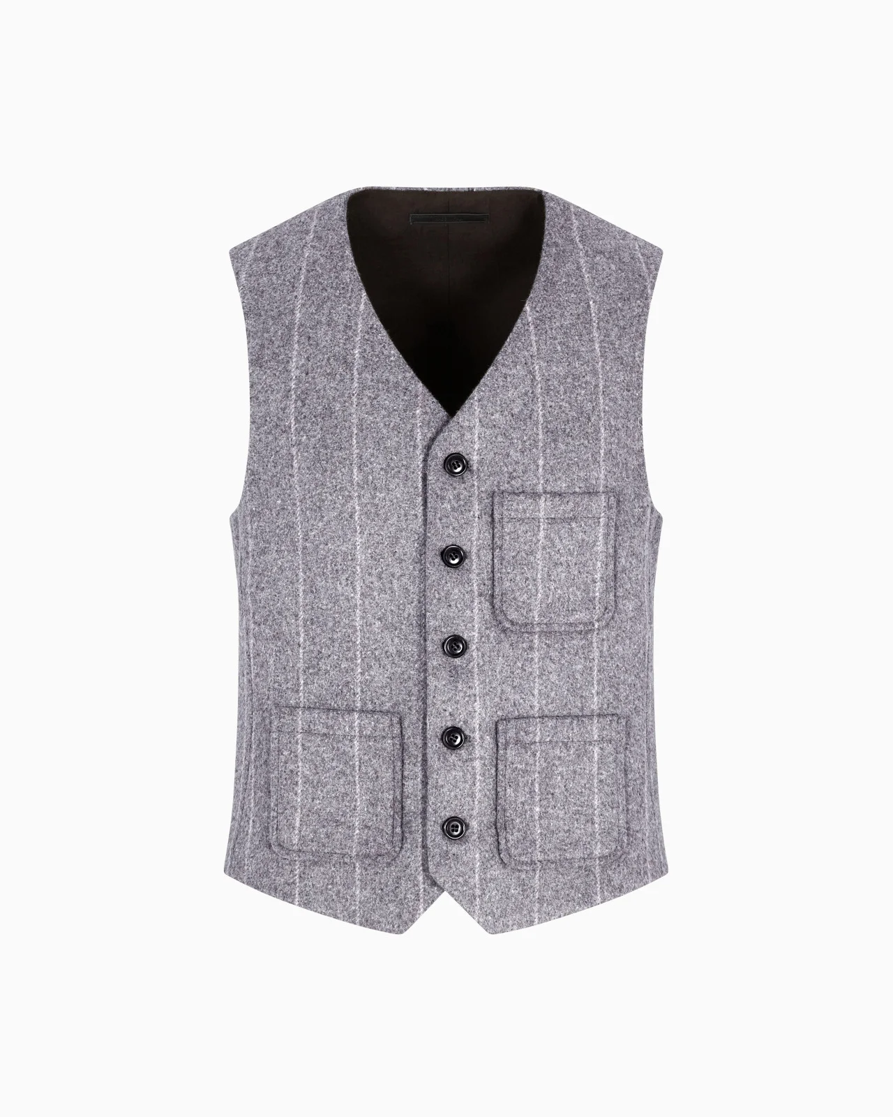 SINGLE-BREASTED WAISTCOAT IN PINSTRIPED ALPACA-BLEND CLOTH