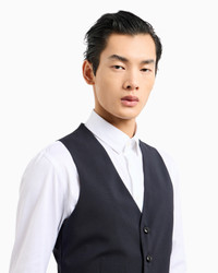 Classic-fit waistcoat made from virgin wool featuring a clean, minimalist design. Highly versatile, it creates wide array of diverse, sophisticated looks when worn with the collection’s jackets. Product Code: 9CGGK00MT00FN1UBUV Details Composition 100% Virgin Wool V neck Buttoned, single-breasted closure Two small welt pockets Adjustable back strap Lined Length: 56.5 cm Made in Italy Fitting The model is 188 cm tall and is wearing size 48/M