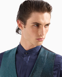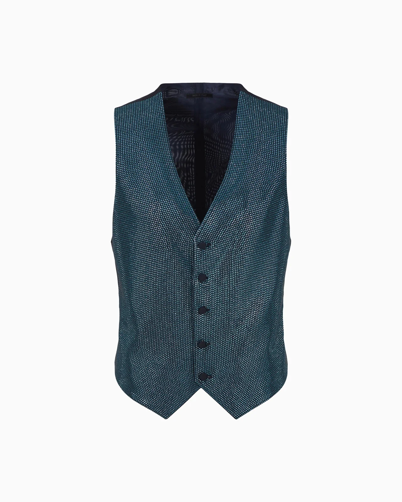 Ultra-bright single-breasted waistcoat, made of wool crepe and characterised by the pave of heat-adhesive rhinestones that adorn the front. It will be the star of evening looks, completing them with a shimmering touch that won’t go unnoticed. The garment is part of an exclusive capsule collection dedicated to special occasions, reflecting the iconic vision of elegance through the brand’s style codes. A sophisticated, timeless and elegant style in silk with geometric jacquard motifs and dense, luminous velvets that create an alluring play of light. Product Code: 4SGGK06FT002Z1UBUV Details Composition 100% Virgin Wool Single-breasted waistcoat V neck Five-button, single-breasted closure Lined Length: 56.5 cm Made in Italy