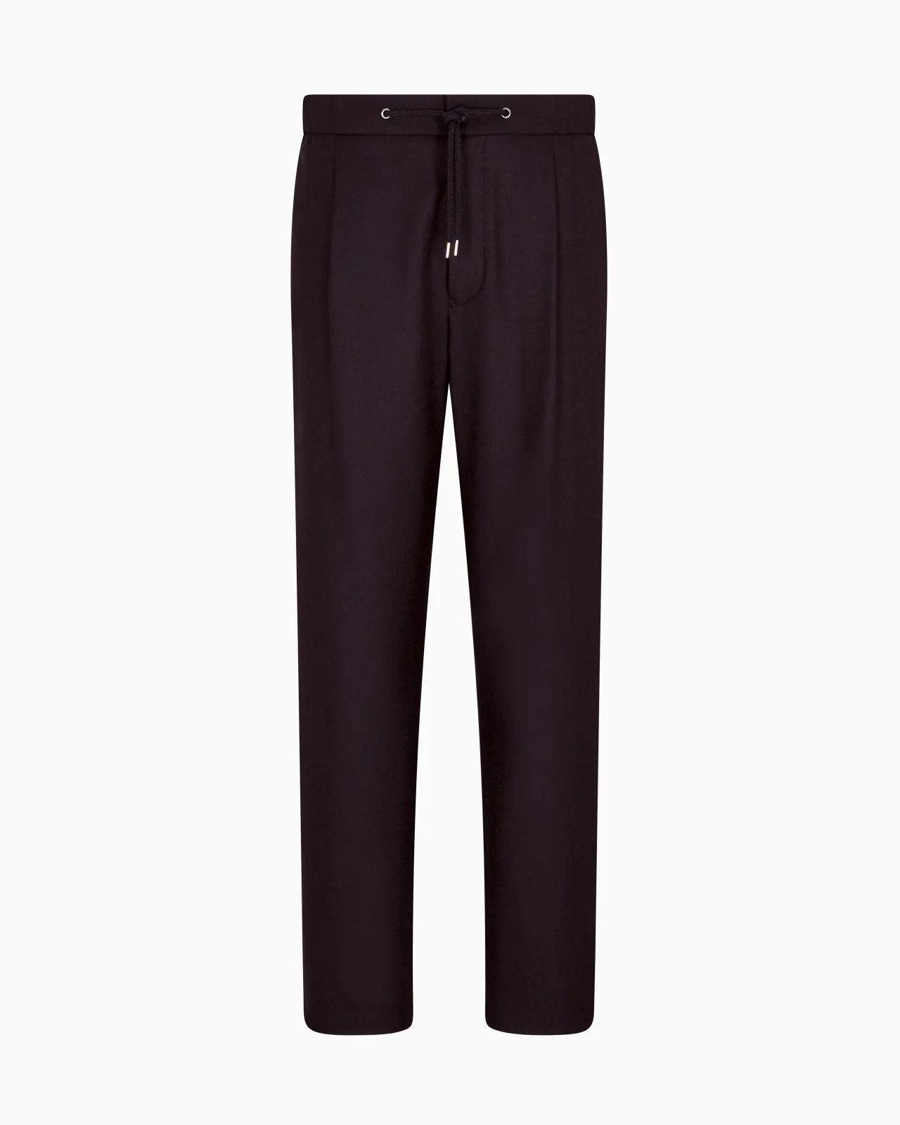 Single-pleat trousers made of cashmere drap, with a comfortable, fresh feel. Featuring a drawstring detail at the waist, which ensures exceptional comfort for the wearer, the style features side pockets and a button and zip fastening. A relaxed and versatile offering that can be paired with deconstructed jackets and shirts. The piece is part of the selection made of cashmere drap, a luxurious fabric prized for its softness, lightness and sophistication, with a compact yet plush structure that ensures a comfortable, fluid fit. A selection of tailored pieces designed for classic, sophisticated elegance. Single-pleat trousers Drawstring waistband Button and zip closure Two side welt pockets Two back welt pockets Cuff width: 19 cm Made in Italy Product Code: GM000249TE10115U6031