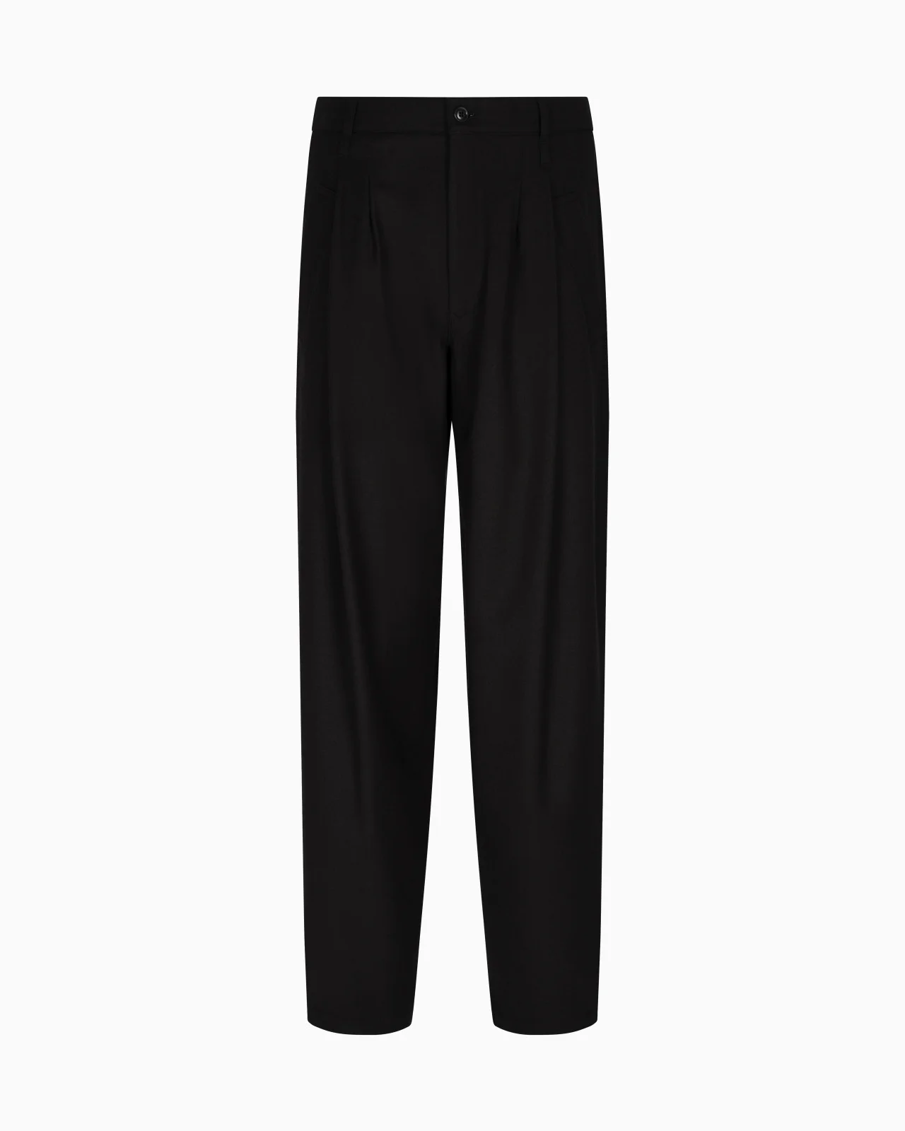 Trousers made of lightweight wool cloth in a comfortable fit that allows unrestricted movement. With a single front pleat, side welt pockets and a button-and-zip fastening, the style stands out for its relaxed, laid-back attitude: perfect for pairing with the collection’s shirts and jumpers in an endless variety of looks. Single-pleat trousers Waistband with belt loops Button and zip closure Two slant pockets Two buttoned back pockets Made in Italy Product Code: GM001421TE10090UC001