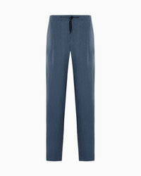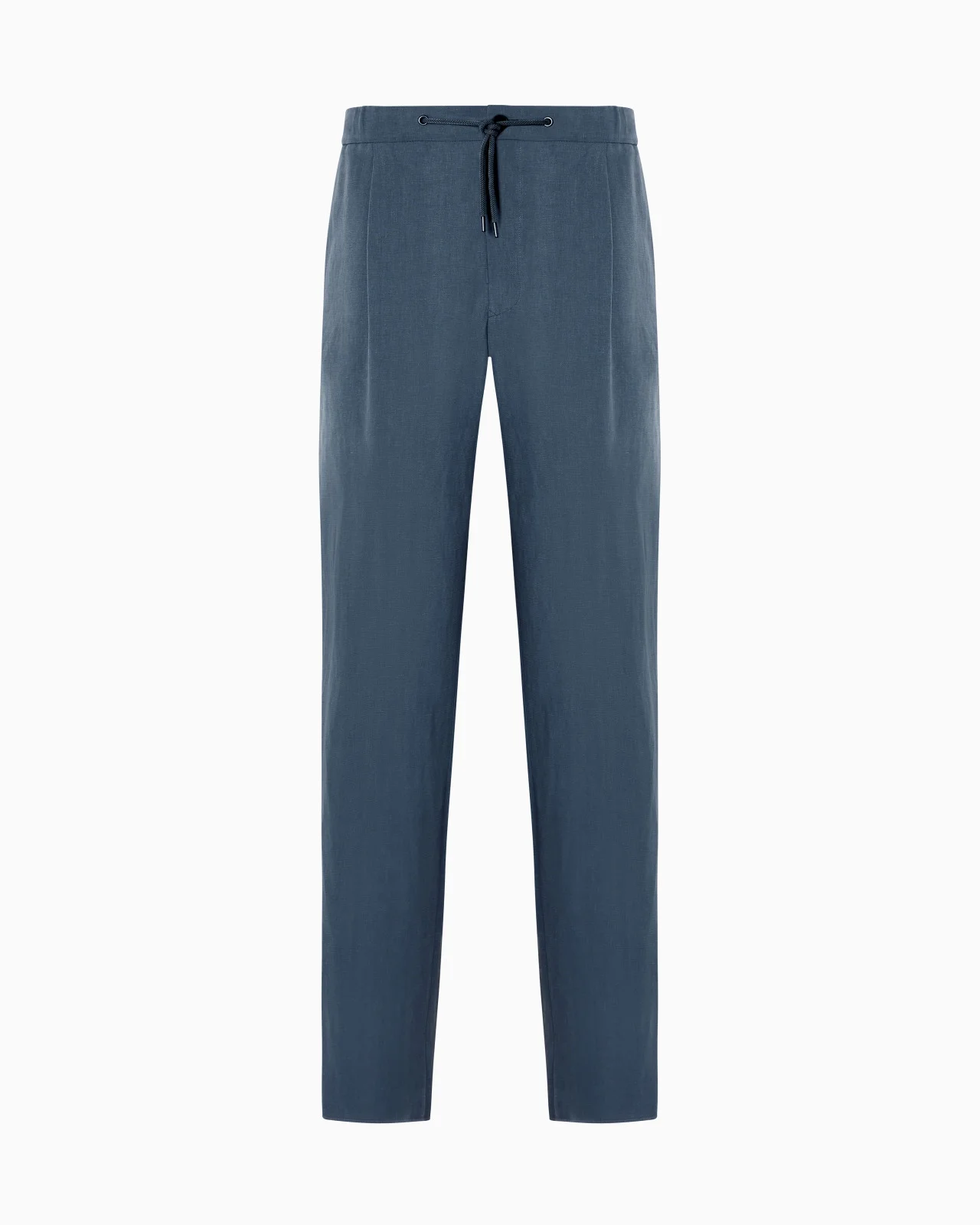 Single-pleat trousers made of smooth linen canvas, with a comfortable, fresh feel. Featuring a drawstring detail at the waist, which ensures exceptional comfort for the wearer, the style features side pockets and a button and zip fastening. A relaxed and versatile offering that can be paired with deconstructed jackets and shirts. Single-pleat trousers Drawstring waistband Button and zip closure Two side welt pockets Two back welt pockets <b>Hem width: 19 cm Made in Italy Product Code: GM001625TE10954U8167