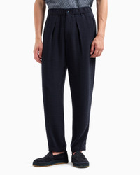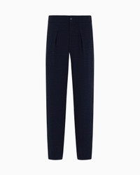 Trousers made of cupro and viscose embellished with a monochromatic chevron jacquard motif. With a single front pleat, side welt pockets and a button-and-zip fastening, the style stands out for its relaxed, fresh attitude: perfect for pairing with the collection's shirts and T-shirts in an endless variety of looks. Single-pleat trousers Elasticated waist Button and zip closure Two side welt pockets Two back pockets Cuff width: 19 cm Made in Italy Product Code: GM000576TE14380UB114