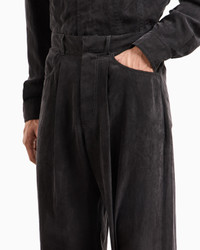Single-pleat trousers made of Lyocell canvas, a semi-synthetic fibre that is produced from eucalyptus trees and has an exceptionally low impact on the environment. It is valued for its excellent durability, capacity to absorb moisture, breathability and crease resistance. The style features a waistband with belt loops and has side and back pockets, a unique detail that elevates its clean, essential lines. A relaxed and versatile offering that is perfect with relaxed shirts or T-shirts.<br>The piece is part of the Holiday selection that plays with a striking colour palette, incorporating black onyx, sky blue and ivory. These shades are combined with luxurious fabrics like linen and silk, and iconic ones, like cupro and Lyocell, creating a unique experience in texture. Modern, relaxed shapes dress up different occasions with unmistakable Giorgio Armani style. Single-pleat trousers Waistband with belt loops Button and zip closure Two front pockets Two back patch pockets Cuff width: 23 cm Made in Italy Product Code: GM001743TE16002UC001