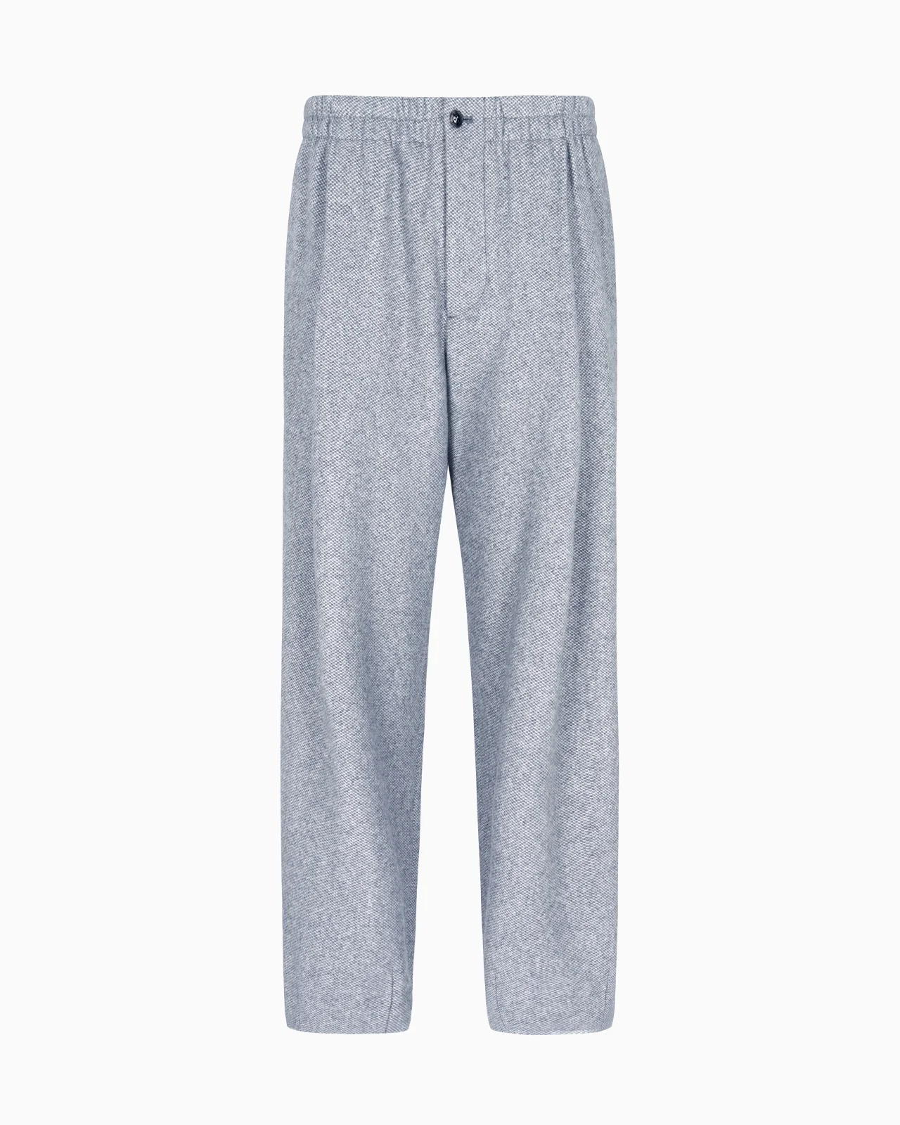 Single-pleat trousers in warm, cosy cashmere, with a knit effect adding movement and giving the yarn structure and a three-dimensional effect. With an elastic waistband, button and zip closure and side pockets, the style is distinguished by the smooth feel of the yarn that ensures a comfortable fit. A piece with a modern, relaxed cut, the perfect match for a multitude of looks. Single-pleat trousers Elasticated waistband Button and zip closure Two side pockets Two welt-pockets with button on the back Cuff width: 20 cm Made in Italy Product Code: GM002253TE17853M8109