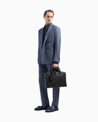 This sophisticated Soho line suit in cashmere and stretch cotton, features a denim-effect weave that unites tailoring tradition with exquisite, refined fabrics that highlight the modern look of the garment. The double-breasted, four-button jacket has peak lapels, a breast pocket and welt pockets. The flat-front trousers feature a waistband with belt loops, a zip and button closure and side pockets. Soho Line suit Four-button, double-breasted jacket Notched lapels Welt pockets Breast welt pocket Side slits Lined Jacket length: 73.5 cm Flat-front trousers Waistband with belt loops Button and zip closure Trouser hem width: 19 cm Made in Italy Product Code: GM000610TE14327UB086