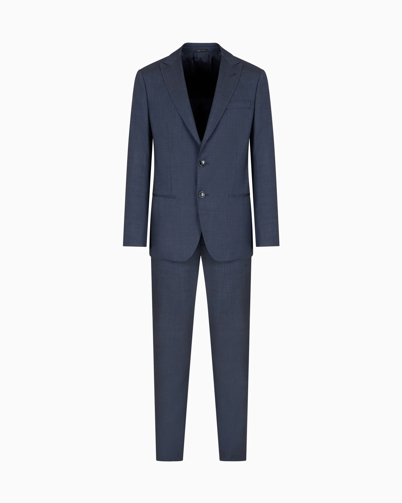 This sophisticated Soho line suit combines tailoring traditions with luxurious, refined fabrics that highlight the garment’s modern image. This style, made of wool and silk with a chambray-effect texture, is composed of a single-breasted jacket with peak lapels and welt pockets, paired with comfortable flat-front trousers. A timeless style, indispensable to the elegant man’s wardrobe. Soho Line suit Single-breasted jacket with two buttons Peak lapels Two welt pockets Breast welt pocket Side slits Lined Jacket length: 73.5 cm Flat-front trousers Waistband with belt loops Button and zip closure Two welt pockets Two back welt pockets Trouser hem width: 19 cm Made in Italy Product Code: GM000607TE13594UB094