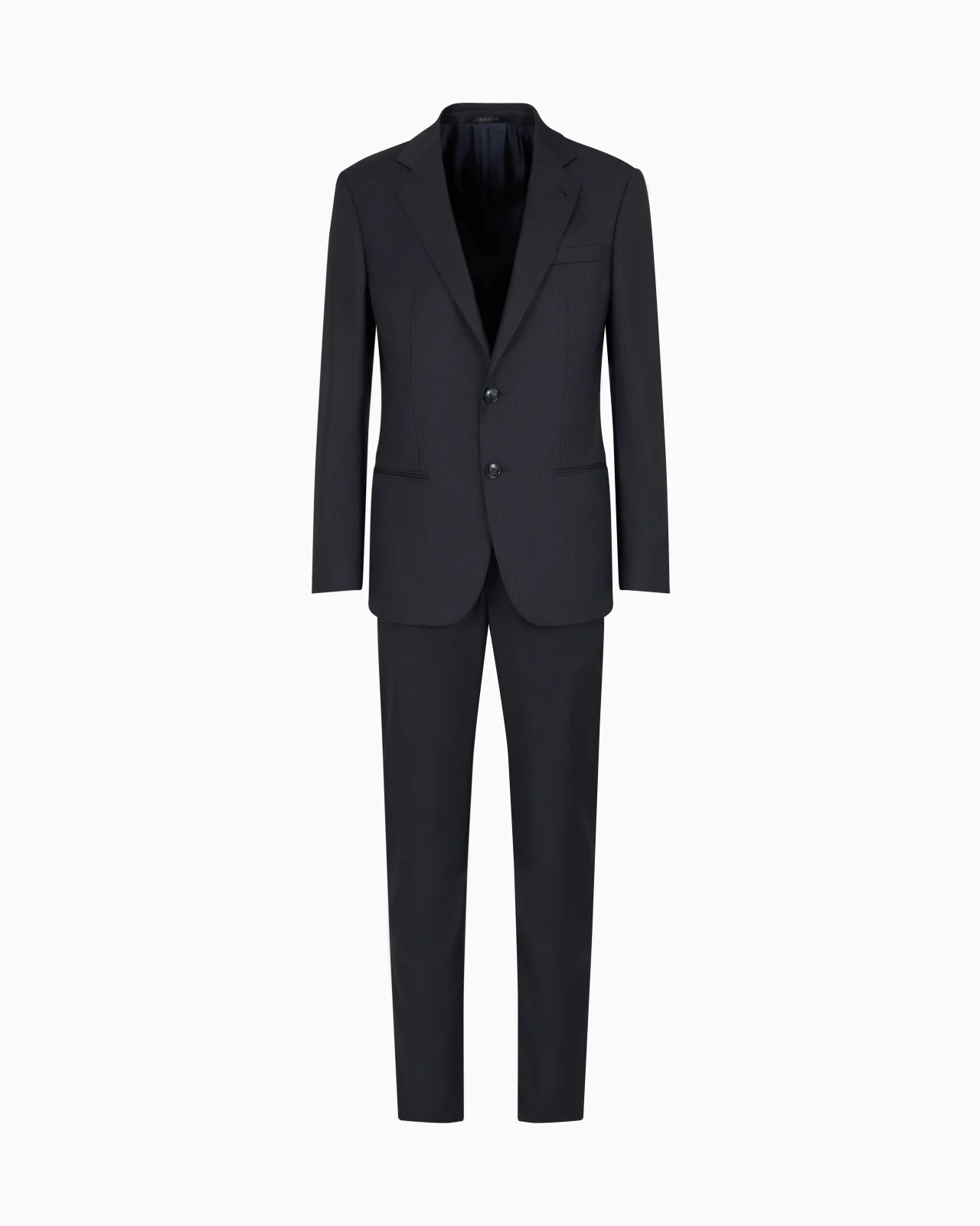 This sophisticated Soho line suit combines tailoring traditions with luxurious, refined fabrics that highlight the garment’s modern image. This style, made of virgin wool in monochromatic cannete-effect jacquard, is composed of a single-breasted jacket with notched lapels and welt pockets, paired with flat-front trousers in a comfortable fit. A timeless style, indispensable to the elegant man’s wardrobe. Product Code: GM000605TE118411MB024 Details Composition 100% Virgin Wool Soho line suit Single-breasted jacket with two buttons Notched lapels Welt pockets Breast welt pocket Side slits Lined Jacket length: 73.5 cm Flat-front trousers Button and zip closure Two welt pockets Two back welt pockets Trouser hem width: 19 cm Made in Italy Fitting The model is 188 cm tall and is wearing size 48