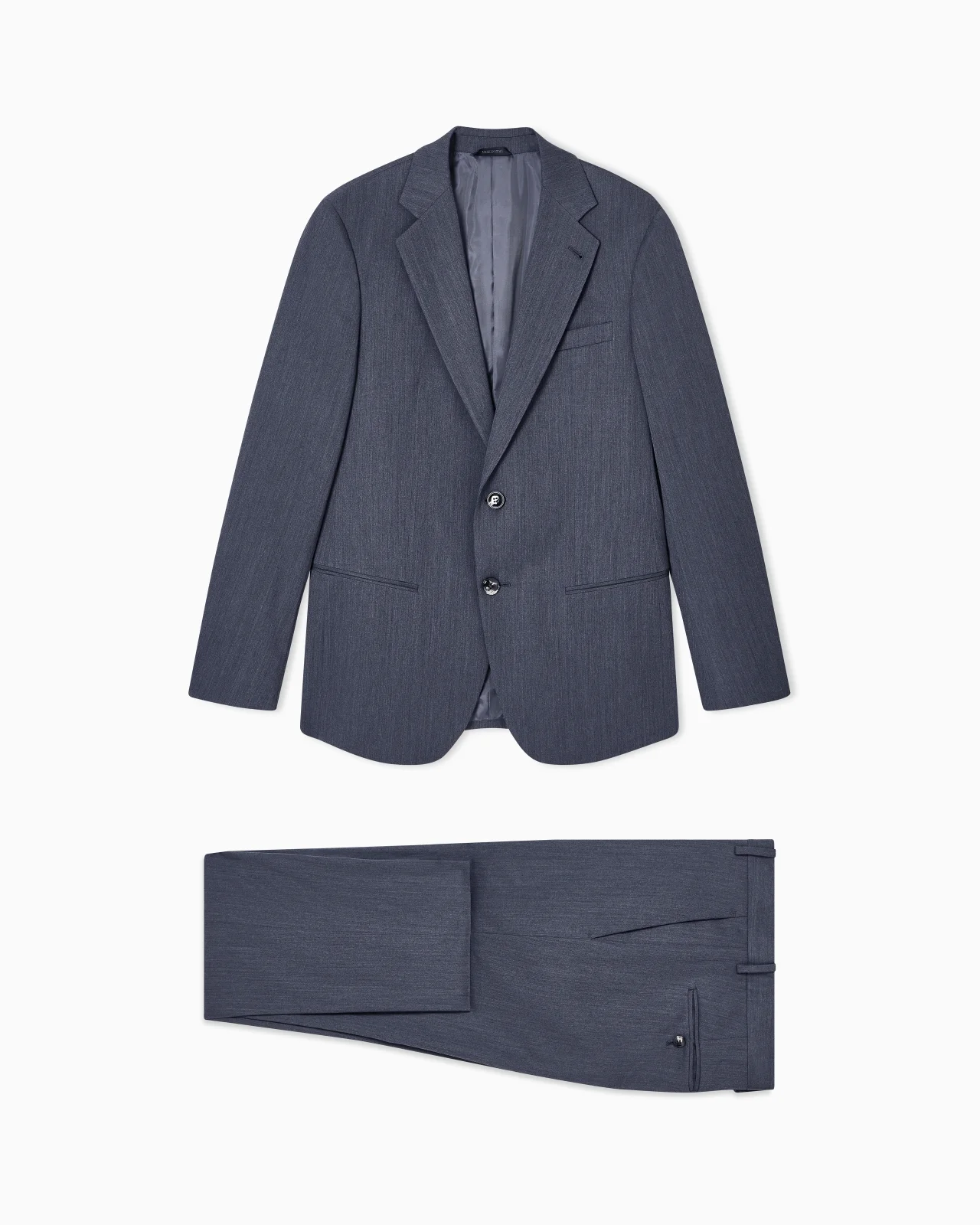 This sophisticated Soho line suit combines tailoring traditions with luxurious, refined fabrics that highlight the garment’s modern image. This style, in water-repellent pure virgin wool twill, is composed of a single-breasted jacket with notched lapels and welt pockets, paired with flat-front trousers in a comfortable fit. A timeless style, indispensable to the elegant man’s wardrobe. Soho Line suit Single-breasted jacket with two buttons Notched lapels Two welt pockets Breast welt pocket Side slits Lined Jacket length: 73.5 cm Flat-front trousers Waistband with belt loops Button and zip closure Two welt pockets Two back welt pockets Trouser hem width: 19 cm Made in Italy Product Code: GM000605TE10047U8122