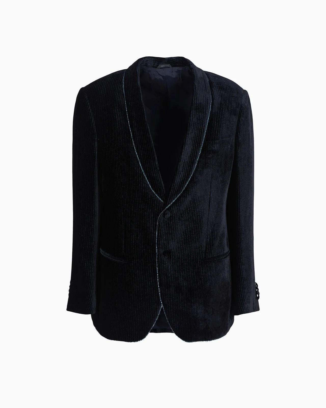 Luxurious, sophisticated single-breasted jacket made of velvet, illuminated by a pinstripe motif with monochromatic micro rhinestones and piping with contrasting heat-adhesive rhinestones. An extremely sophisticated style inspired by the night sky, designed for unmistakably elegant evening looks. The garment is part of an exclusive capsule collection dedicated to special occasions, reflecting the iconic vision of elegance through the brand’s style codes. A sophisticated, timeless and elegant style in silk with geometric jacquard motifs and dense, luminous velvets that create an alluring play of light. Product Code: 4SGGG187T05281FBWZ Details Composition 80% Viscose 20% Mulberry silk Soho line tuxedo jacket Single-breasted jacket Shawl collar Single-breasted closure with covered buttons Two double welt pockets Breast welt pocket Cuffs with four covered buttons Contrasting rhinestone piping Lined Length: 73.5 cm Made in Italy