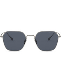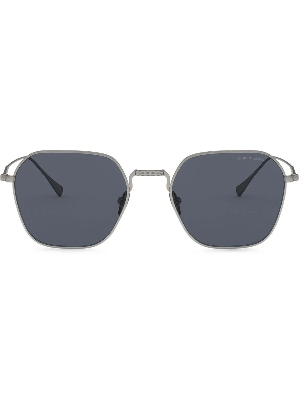 square-frame tinted sunglasses Matte gunmetal metal square-frame tinted sunglasses from Giorgio Armani featuring tinted lenses, square frames, a logo decal on the lens, a straight bridge and straight arms with curved tips. This item comes with a protective case. Made in United States Composition Outer: Metal 100% SIZE & FIT Measurement Arm Length 5.7 in(14.5 cm) Bridge Width 0.78 in(2 cm) Lens Diameter 2.08 in(5.3 cm)
