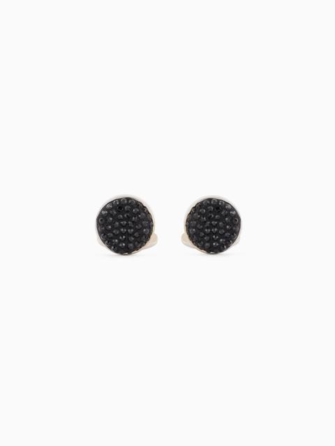 Shimmering round cufflinks made of sterling silver and embellished with a centre insert made of satin and matching pave crystals. Sterling silver cufflinks Centre insert detail in satin with applied pave crystals Made in Italy Product Code: 53M5014F50100020