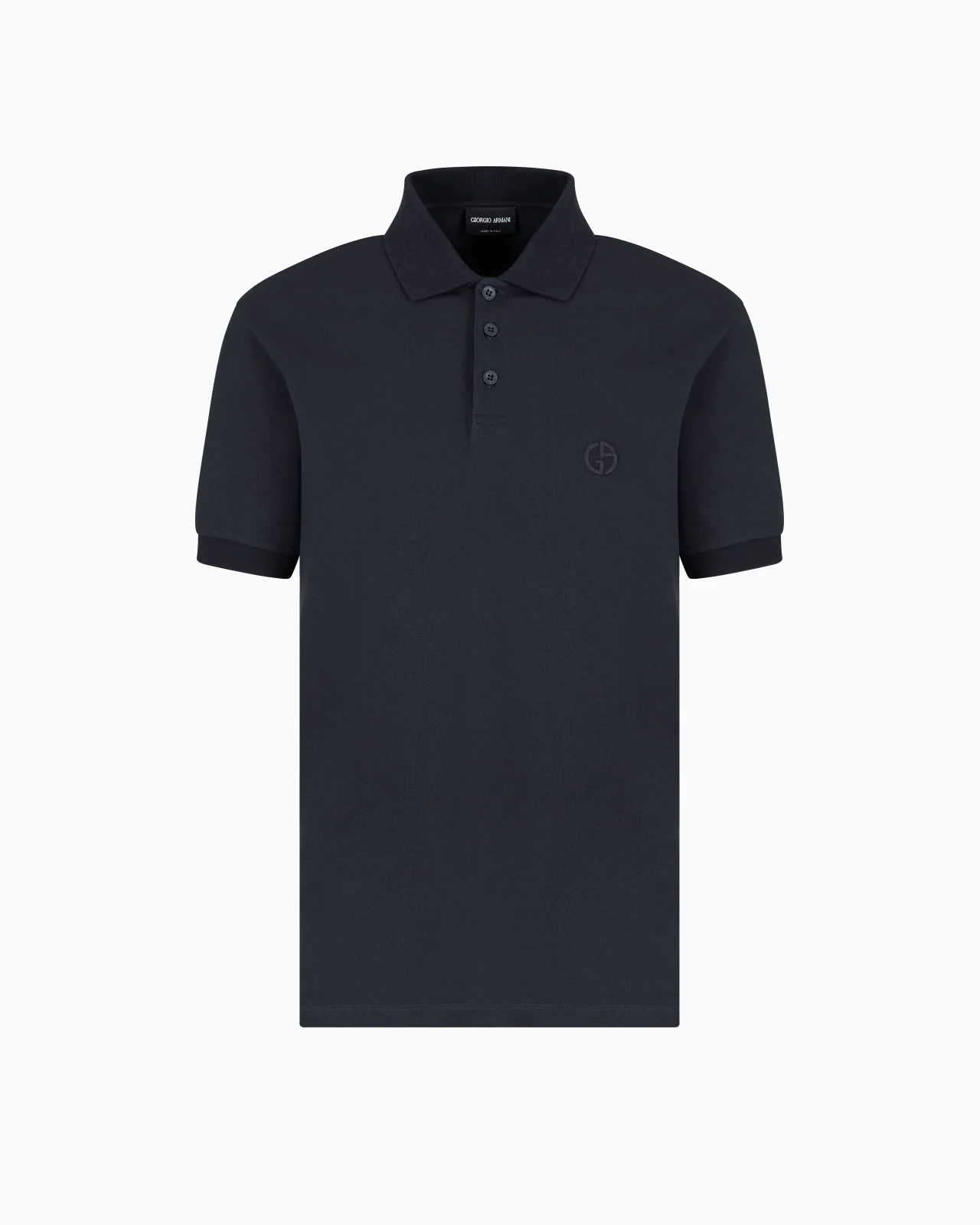 Essential and versatile, this short-sleeved polo shirt stands out with its matching iconic monogram logo embroidered on the chest. Made from stretch-cotton pique, it is a wardrobe staple for the stylish man. Perfect for effortless looks. Product Code: 8NSF70SJCNZ1UBWF Details Composition 97% Cotton 3% Elastane Three-button collar Short sleeves Matching, embroidered GA logo on the chest Made in Italy Fitting The model is 188 cm tall and is wearing size 48/M