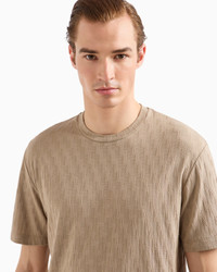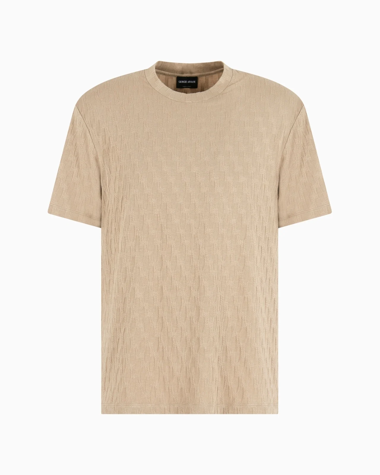 The monochromatic geometric jacquard motif distinguishes this short-sleeved crew-neck T-shirt made from a stretch viscose blend. This regular-fit style is defined by its minimalism and versatility, perfect for creating looks with a relaxed, effortless allure. Regular fit Crew neck Short sleeves Three-dimensional effect jacquard Made in Italy Product Code: GM001107AF14800U6172