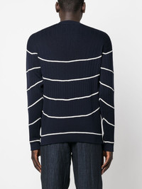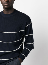 striped ribbed-knit jumper Highlights - Navy blue - Silk-cotton blend - Ribbed knit - Horizontal stripe pattern - Crew neck - Straight hem - Long sleeves Made in Italy Composition Silk 59%, Cotton 41% SIZE & FIT Model measurements Height 6 ft 2 in(1.87 m) Bust/Chest 36.41 in(92.5 cm) Hips 37 in(94 cm) Waist 29.52 in(75 cm) FittingInformation Designed for a relaxed fit, this piece allows for comfort and movement when worn Made with a midweight knit, this piece offers some stretch This piece fits true to size – take your usual size