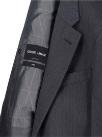 GIORGIO ARMANI SINGLE-BREASTED SUIT IN BLACK VIRGIN WOOL, CLASSIC LAPELS, LONG SLEEVES, SINGLE-BREASTED BUTTON CLOSURE, TWO FRONT WELT POCKETS, ONE WELT POCKET ON THE CHEST, BUTTON CUFFS, STRAIGHT HEM, TAILORED TROUSERS, BUTTON AND ZIP CLOSURE, BELT LOOPS, TWO BACK WELT POCKETS, STRAIGHT LEG. PRODUCT INFO PRODUCT CODE GM000007 TE10047U8122 COMPOSITION: 100% VIRGIN WOOL SIZE AND FIT: REGULAR FIT MADE IN: ITALY