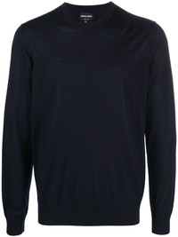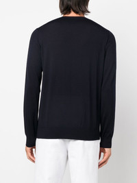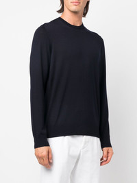 round-neck jumper navy blue virgin wool round neck knitted construction long sleeves straight hem Made in Italy Composition Virgin Wool 100% SIZE & FIT Model measurements Height 6 ft 2 in(1.89 m) Bust/Chest 37.79 in(96 cm) Hips 37 in(94 cm) Waist 29.92 in(76 cm) FittingInformation This piece fits true to size. We recommend you get your regular size Cut for a relaxed fit Made with a mid-weight fabric
