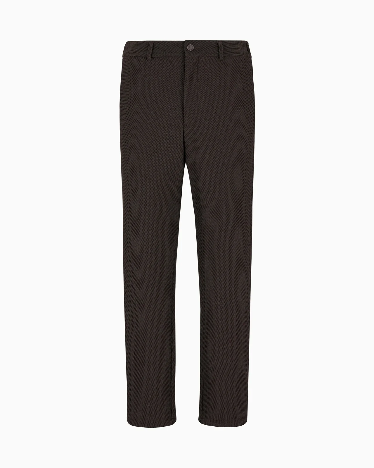 These casual men’s trousers are defined by a fluid cut, unrestricted fit, cosy fabric and laid-back allure. This flat-front style with elasticated waistband and comfortable fit is made from technical waffle and can be styled to create a wide variety of daytime outfits. Product Code: GM000261TE100451U6031 Details Composition 80% Polyamide 20% Elastane Flat-front style Elasticated waist Zip closure Two side pockets Two buttoned back pockets Cuff width: 18 cm Made in Italy Fitting The model is 188 cm tall and is wearing size 48 / M