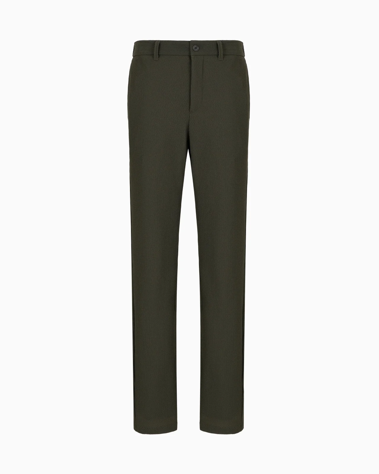 These casual men’s trousers are defined by a fluid cut, unrestricted fit, cosy fabric and laid-back allure. This flat-front style with elasticated waistband and comfortable fit is made from technical waffle and can be styled to create a wide variety of daytime outfits. Product Code: GM000261TE100451U8121 Details Composition 80% Polyamide 20% Elastane Flat-front style Elasticated waist Zip closure Two side pockets Two buttoned back pockets Cuff width: 18 cm Made in Italy Fitting The model is 188 cm tall and is wearing size 48 / M