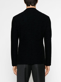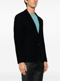 textured-finish notched-lapels blazer Highlights - Navy blue - Stretch-design - Textured finish - Notched lapels - Front button fastening - Two front patch pockets - Long sleeves - Curved hem Made in Italy Composition Polyamide 80%, Elastane 20% SIZE & FIT Model measurements Height 6 ft 2 in(1.89 m) Bust/Chest 37.79 in(96 cm) Hips 37 in(94 cm) Waist 29.92 in(76 cm) FittingInformation Designed for a slim fit, offering a comfortable fit that sits just away from the body Made from a midweight stretch fabric, this piece offers elasticity and flexibility when worn This piece fits true to size – take your usual size Washing instructions Dry Clean Only
